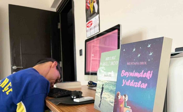 Aydın’ın Efeler ilçesinde, doğumda beyni oksijensiz kaldığı için ’serebral palsi’ hastalığı nedeniyle ellerini ve ayaklarını kullanamayan 44 yaşındaki Mustafa Erol, 5 yıl süren bir çalışmanın ardından burnunu kullanarak ikinci kitabı ’Beynimdeki Yıldızlar’ı tamamladı.