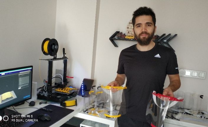 Aydın’ın Köşk ilçesinde Öğretmen Çağlar Gülcek, sağlık çalışanları için kendisine ait 3D yazıcı ile evinde siperlikli maske üretiyor.