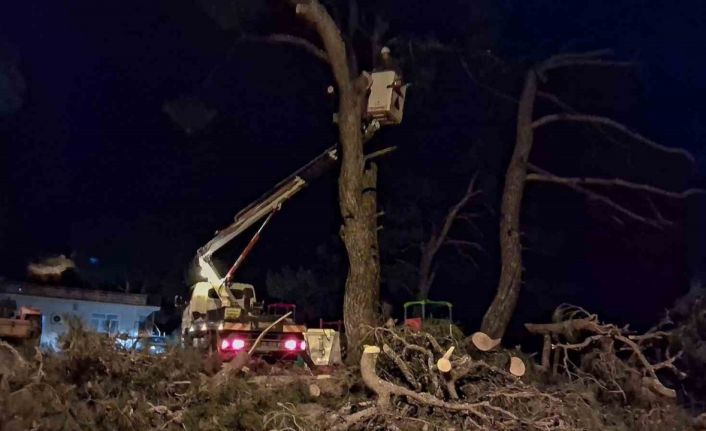 Fırtınanın etkili olduğu saatlerde ilçenin farklı noktalarında da benzer ihbarlara anında müdahale edilirken, Şahnalı Mahallesi’nde de yola devrilen elektrik direkleri kısa sürede kaldırılarak yol yeniden ulaşıma açıldı.