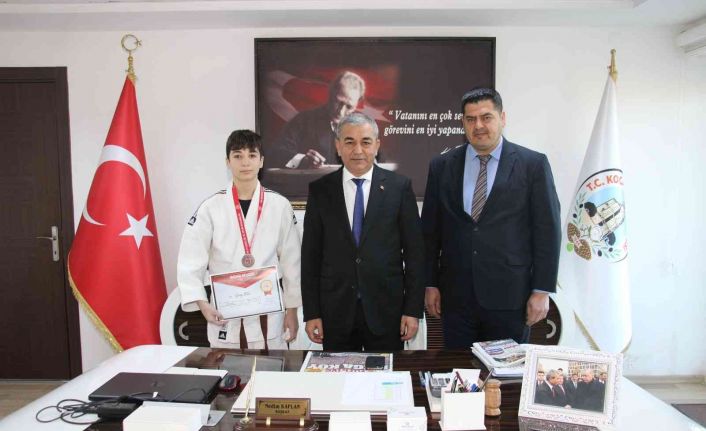 Koçarlı Belediyespor Kulübü Judo takımı sporcularından Eren Kılınç, Muğla’da düzenlenen “Okul Sporları Liseler Türkiye Judo Şampiyonası” yarı final müsabakalarından 3’ncü olurken, Belediye Başkanı Nedim Kaplan sporcuyu makamında kabul ederek tebrik etti.