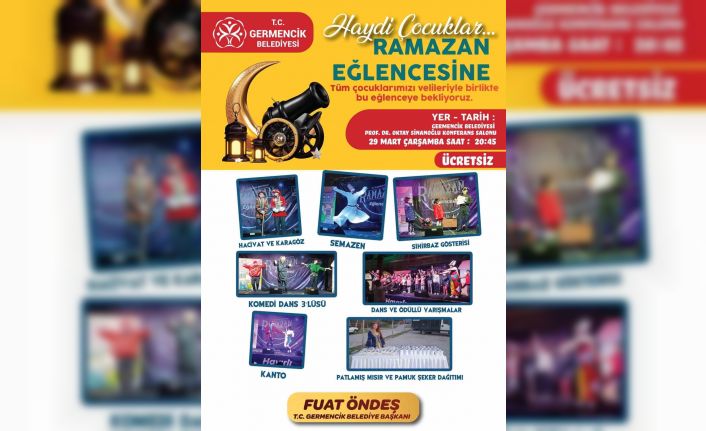 Vatandaşları etkinliklere davet eden Germencik Belediye Başkanı Fuat Öndeş, “Ramazan ayının önemine binaen özellikle çocuklarımızın velileriyle birlikte keyifli vakit geçirmeleri için bir dizi etkinlik takvimi oluşturduk. Vatandaşlarımızın günlük hayatın stres ve sıkıntısından bir nebzede olsa uzaklaşmaları ve Ramazan ayının maneviyatının hissedilmesi için hazırladığımız etkinliklerimizi halkımızla buluşturacağız. Tüm vatandaşlarımızın mübarek Ramazan ayını bu vesileyle kutluyor, saygılarımı sunuyorum” ifadelerini kullandı.