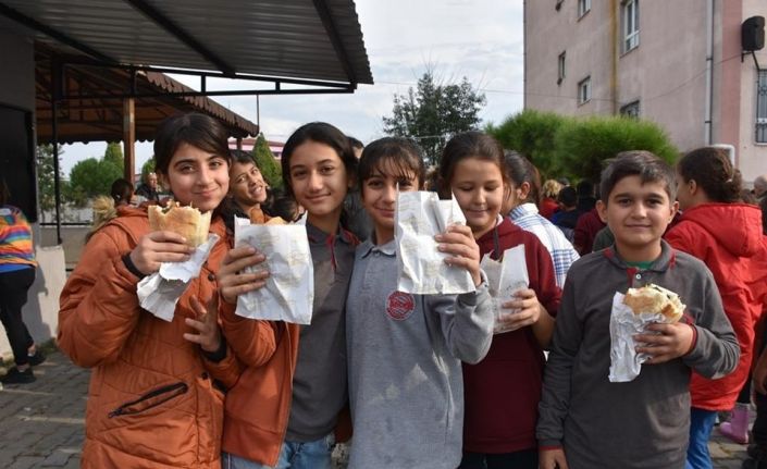 Aydın’ın Germencik ilçesinde 700 öğrenciye balık ekmek ve helva dağıtımı yapıldı.