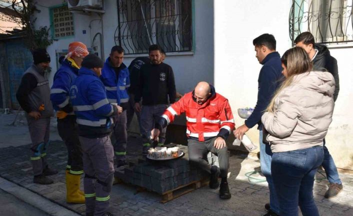 Germencik Belediye Başkanı Burak Zencirci soğuk havaya rağmen özveriyle çalışan işçilere çay götürdü, molalarına katıldı.