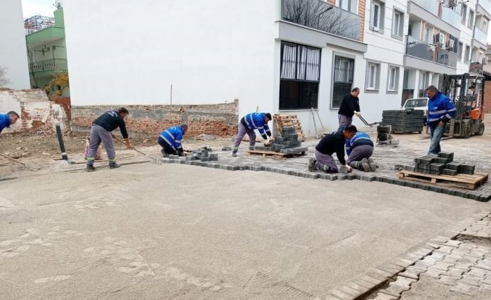Aydın’ın Germencik ilçesinde sahaya inen belediye ekipleri, İstasyon Mahallesi’nde parke taşı döşeme çalışmalarına devam ediyor.