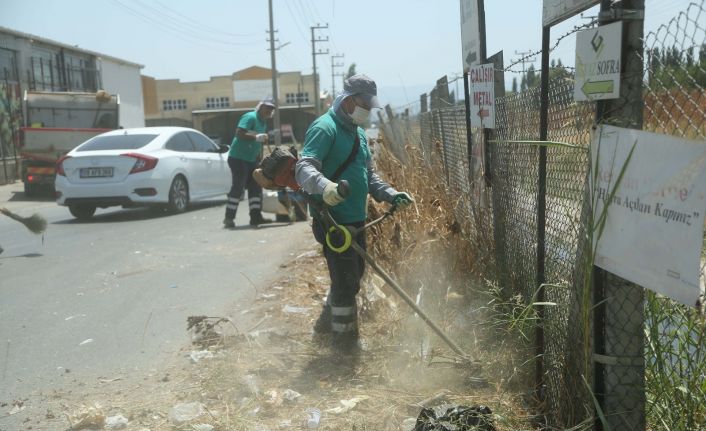 Efeler Belediyesi, hava sıcaklığının rekor seviyelere yükseldiği bu günlerde, olası bir yangın ihtimaline karşı ilçe genelinde kuru ot temizliği çalışmalarına hız verdi. Bu kapsamda görev alan Efeler Belediyesi Park ve Bahçeler Müdürlüğü ekipleri, oldukça geniş bir alana sahip olan Aydın Toptan Gıda Çarşısı ve İş Merkezi’nde kuru ve yabani ot temizliği işlerini yaptı. Efeler Belediyesi’nce gerçekleştirilen özverili çalışmalar sayesinde nezih bir kimliğe sahip olan çarşıda yapılan hummalı çalışmalar, rutin olarak sürdürülüyor.