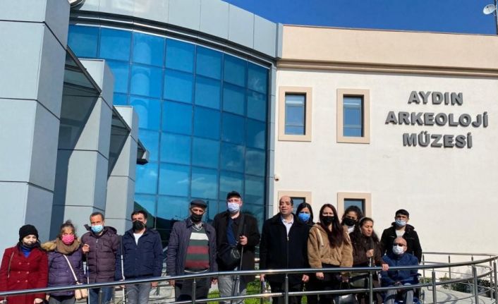 Aydın’ın Efeler ilçesinde ziyaretçilerini bekleyen Arkeoloji Müzesi’ni ziyaret eden görme engelli bireyler, gönül gözleriyle tarihi eserleri inceledi.