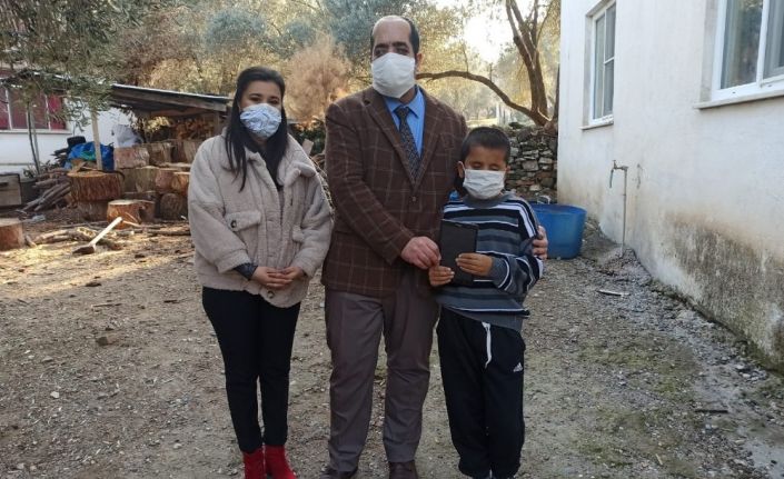 Aydın Büyükşehir Belediye Başkanı Özlem Çerçioğlu, İzmir Aşık Veysel Şatıroğlu Körler Ortaokulu 6. sınıf öğrencisi Bozdoğanlı Orhan Can Baysal’a tablet hediye etti.