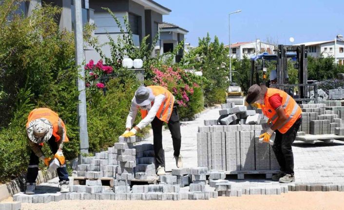 Güzelçamlı Mahallesi’ne Başkan Ömer Günel’in ilk 5 yıllık görev süresinde 113 milyon liralık yatırımla 43 kilometre yeni yol kazandıran Kuşadası Belediyesi, bölgedeki 3 sokağın daha üstyapısını yenilemek için kolları sıvadı. Bu kapsamda Fen İşleri Müdürlüğü ekipleri 7084, 7085 ve 7086’ıncı sokaklarda kilit parke taşı döşeme çalışması başlattı.