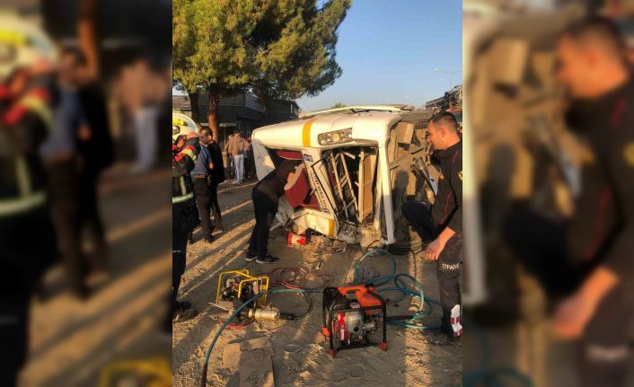 Aydın’ın Germencik ilçesinde akaryakıt tankeri ile işçi minibüsünün çarpışması sonucu meydana gelen trafik kazasında işçi minibüsü devrilirken, kazada 11 kişi yaralandı.