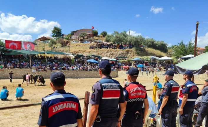 Aydın’ın Germencik ilçesinde düzenlenen boğa güreşinde jandarma ekipleri güvenlik tedbiri aldı.
