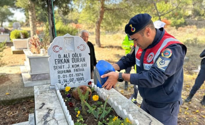 Aydın Çine ilçesinde jandarma ekipleri Duran ailesini ziyaret ederek, Şehit Komando Er Erkan Duran’ın kabrinde bakım ve çiçeklendirme yaptı.