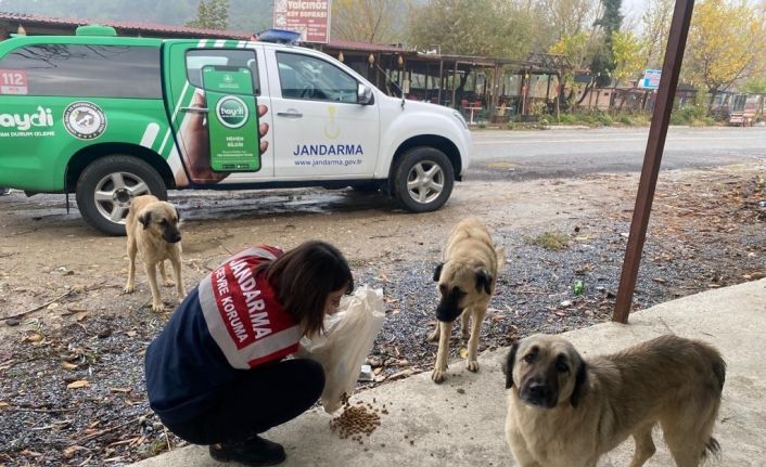 Aydın İl Jandarma Komutanlığı ekipleri Kuşadası ve Sultanhisar ilçelerinde soğuk ve yağışlı havalarda yiyecek bulmakta zorlanan sokak hayvanları için mama bıraktı.