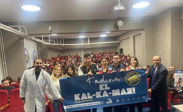 Aydın İl Jandarma Komutanlığı ekiplerince 10 Aralık Dünya İnsan Hakları Günü etkinlikleri çerçevesinde Aydın Adnan Menderes Üniversitesi Koçarlı yerleşkesinde bulunan Ziraat Fakültesi ve Meslek Yüksekokulu’nda bilgilendirme faaliyetleri düzenlendi. ADÜ öğrenci ve öğretim görevlilerine; Aile İçi Şiddetle Mücadele Kısım Amirliği ’Kadına El Kalkamaz Mottosu ile ’6284 sayılı kanun, KADES uygulaması, başvuru yöntemleri’, Çevre, Doğa ve Hayvanları Koruma Tim Komutanlığı ’5199 sayılı kanun ve çevre bilincinin oluşturulması’ ve Siber Suçlarla Mücadele Şube Müdürlüğü de ’siber zorbalık ve güvenli internet kullanımı’ konularında bilgilendirmelerde bulundu. Bilgilendirme faaliyetinde broşür dağıtımı yapılarak, durumsal farkındalık oluşturmak amacıyla öğretim görevlileri ve öğrenciler ile birlikte ’Kadına El Kalkamaz’ pankartı açıldı.