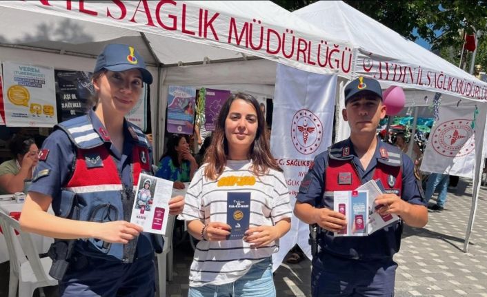 Aydın’ın Kuşadası ilçesinde stant açan jandarma ekipleri hem teşkilatı tanıttı hem de kadın ziyaretçilere KADES uygulamasını anlattı.
