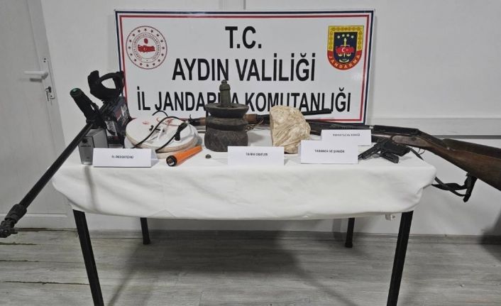 Karacasu İlçe Jandarma Komutanlığınca Karacasu ilçesi Yaykın Mahallesi’nde E.E. isimli şüphelinin adreslerine baskın yapıldı. Edinilen bilgiye göre şüphelinin ikametinde ve aracında yapılan aramada 1 adet yüzük, 1 adet dibek taşı, 1 adet kadın yüz figürü bulunan obje, 2 adet el dedektörü ve aparatları, 1 adet ruhsatsız tabanca, 3 adet ruhsatsız av tüfeği ele geçirildi. Yapılan incelemelerde yüzük, dibek taşı, kadın yüz figürü bulunan objelerin Roma dönemine ait maddi açıdan önemli bir değere sahip olduğu tespit edildi. Ele geçirilen tarihi eser olduğu değerlendirilen malzemeler gerekli işlemlerin ardından Müze Müdürlüğü’ne teslim edilecek. Yakalanarak gözaltına alınan E.E. hakkında adli işlem başlatıldı.