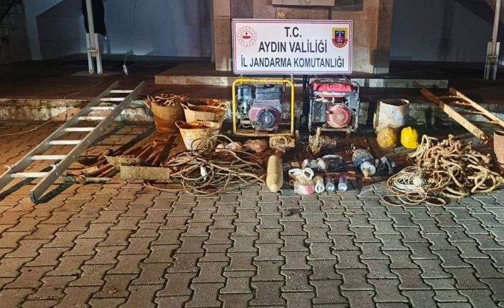 Edinilen bilgiye göre, Didim İlçe Jandarma Komutanlığı tarafından tarihi eser kaçakçılığına yönelik icra edilen çalışmalarda; Z.S., D.T., Y.E.Ç., A.Y., R.A., F.C., H.A., M.K., B.K. ve G.K. isimli 10 şüpheli şahıs tarihi eser bulmak amacıyla kaçak kazı yaptıkları esnada suçüstü yakalandı. Kazı yapılan alanda yapılan araştırma ve aramada; 2 adet jeneratör, 1 adet endoskop yılan kamerası, 60 metre seyyar lamba, 3 adet gaz maskesi, 2 adet merdiven, 50 metre halat, 100 metre seyyar kablo, 47 adet kazı işleminde kullanılan malzeme ele geçirildi. Şüpheli şahıslar hakkında adli süreç devam ettiği öğrenildi.
