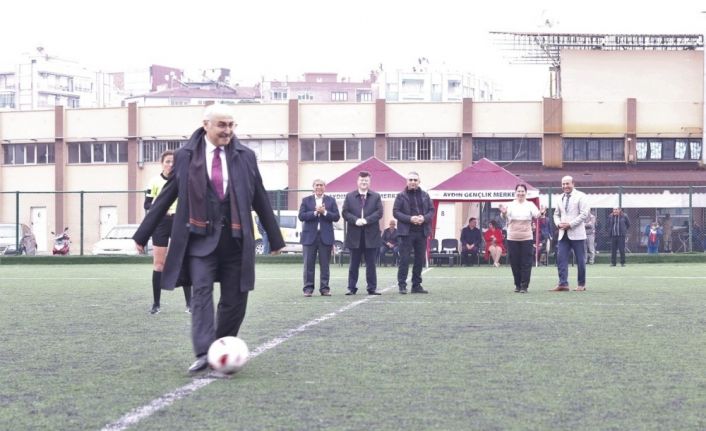 Aydın Valisi Yavuz Selim Köşger, kadına karşı şiddete dikkat çekmek amacıyla düzenlenen kadınlar futbol turnuvasının başlama vuruşunu yaptı.