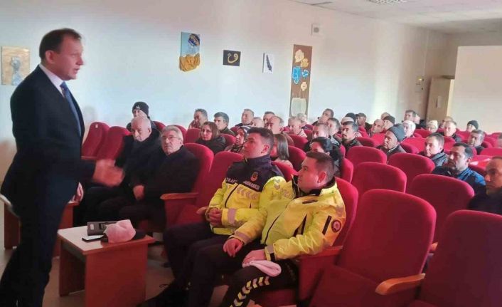 Okul servis aracı sürücüleri ve rehber personeline yönelik olarak düzenlenen toplantıya katılan yetkililer, güvenli ve düzenli okul taşıma hizmetleri için gerekli önlemleri ve trafik kurallarını anlattı. Okul servis araçlarının güvenliği, öğrenci taşımacılığı sırasında dikkat edilmesi gereken noktalar ve trafikle ilgili yapılması gereken düzenlemeler ele alındı.