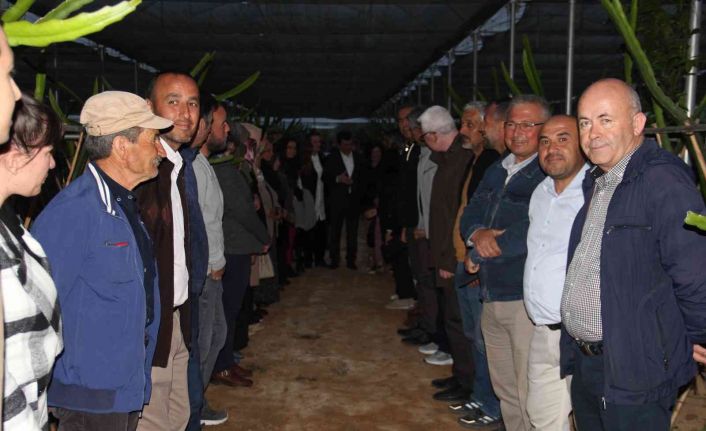 Umurlu Mahallesi’nde pitaya üreticisi Mesude-Mehmet Tuncel çiftinin bahçesinde ve ev sahipliğinde gerçekleştirilen buluşmaya projeli üretim yapan yaklaşık 65 üretici katıldı. Aralarında, hekim, avukat, öğretmen, mühendis ve eğitimcilerin de bulunduğu örtü altı yetiştiricileri ile yeni kurulan pitaya seralarında inceleme yapıp birlikte iftarlarını açtılar.