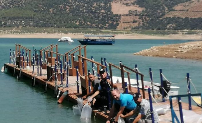 Aydın’da balıklandırma çalışmaları çerçevesinde yüz binlerce yavru sazan Kemer Barajı göletine bırakıldı.