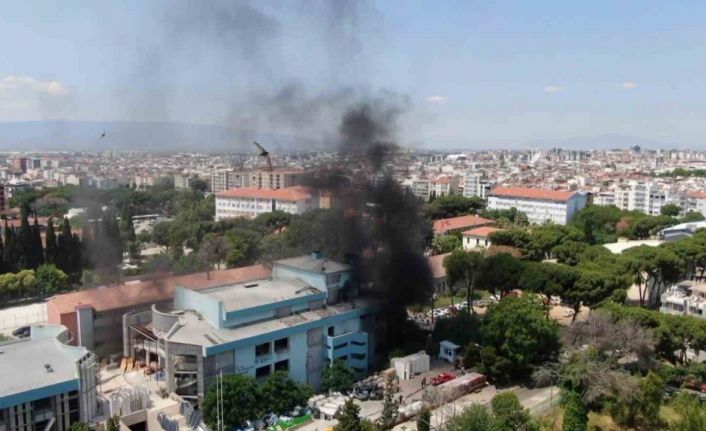 Aydın’ın Efeler ilçesinde İl Kültür ve Turizm Müdürlüğü Kültür Merkezi’nde güçlendirme çalışmaları sırasında çıkan kıvılcımlar izolasyon malzemelerine sıçrayarak yangına neden olurken, şehir merkezinde gökyüzünü kaplayan kara dumanlar görenleri panikletti.