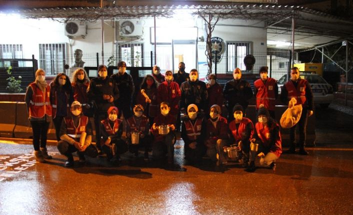 Türk Kızılay Aydın İl Başkanlığı gönüllüleri evlerinde yaptıkları tarhana çorbalarını gece saatlerinde soğuk ve yağmurlu havada görev yapan polis memurlarına ikram etti.
