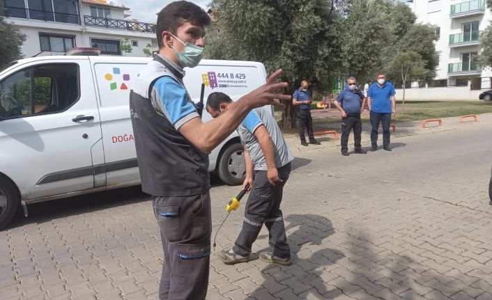 Aydı Efeler İlçe Merkezi Mimar Sinan Mahallesi’nde devriye gezen polis ekipleri 2389 sokak üzerinde yoğun bir doğalgaz kokusu yayıldığını fark edince araçtan inip kokuyu kontrol ettiler. Bölgeye gelen diğer ekipler tarafından da aynı koku duyulması üzerine mahalle sakinleri uyarılıp kaçak ile ilgili tedbir almaları istendi.