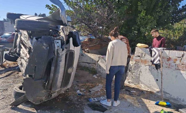 Aydın’ın Söke ilçesinde kontrolden çıkarak yan yatan bir araç, önce bariyerlere çarptı ardından yol kenarındaki bir evin duvarına çarparak durabildi.