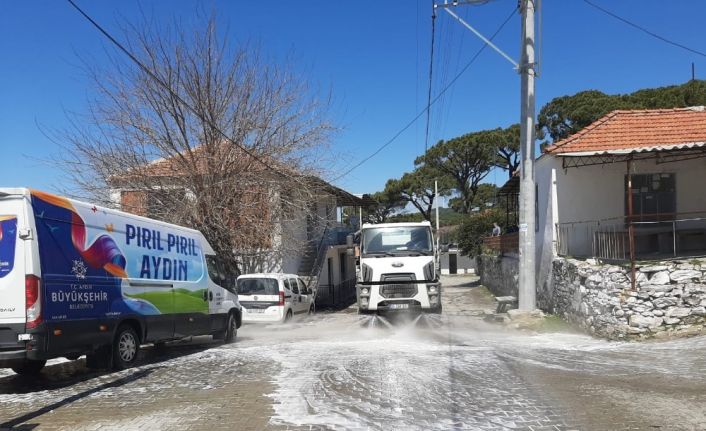 AYDIN (İHA) – Korona virüs vakasının görüldüğü Koçarlı’nın Çallı Mahallesi’nde muhtarlık binası başta olmak üzere tüm ortak kullanım alanları ve yollar Aydın Büyükşehir Belediyesi tarafından dezenfekte edildi.
