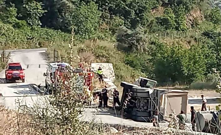 Aydın’ın Köşk ilçesinde kum kamyonunun devrilmesi sonucu meydana gelen kazada 1 kişi yaralandı.