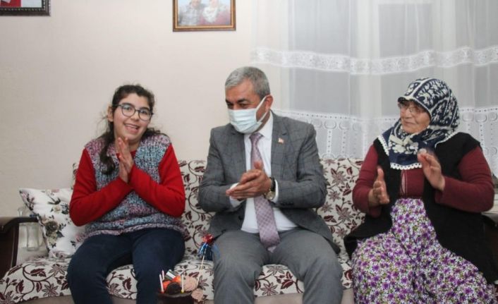 Koçarlı Belediye Başkanı Nedim Kaplan, ilçede yaşayan 15 yaşındaki Şengül Sakallı’nın yeni yaşını, evine gerçekleştirdiği ziyarette doğum günü pastası ve cep telefonu hediyesiyle kutladı.