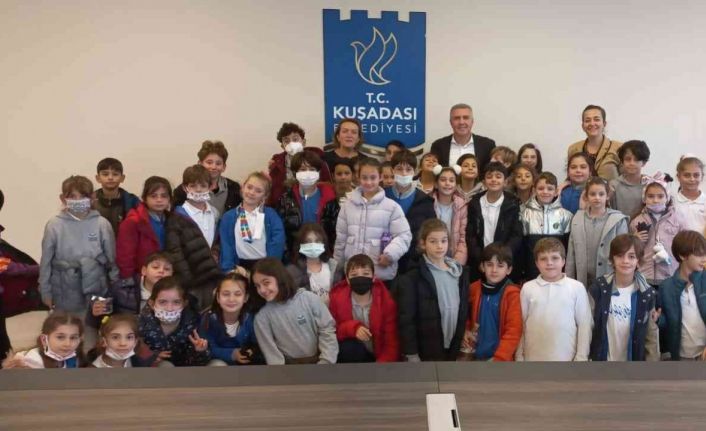 Aydın’ın Kuşadası ilçesindeki özel bir okulun öğrencileri, Kuşadası Belediyesi Yeni Hizmet Binası’nı ziyaret etti. Yetkililerden belediye hizmetleri hakkında bilgi alan öğrenciler, Kuşadası Belediye Başkan Yardımcısı Oğuzhan Turan ile bir araya gelerek kentle ilgili sorular yöneltti.