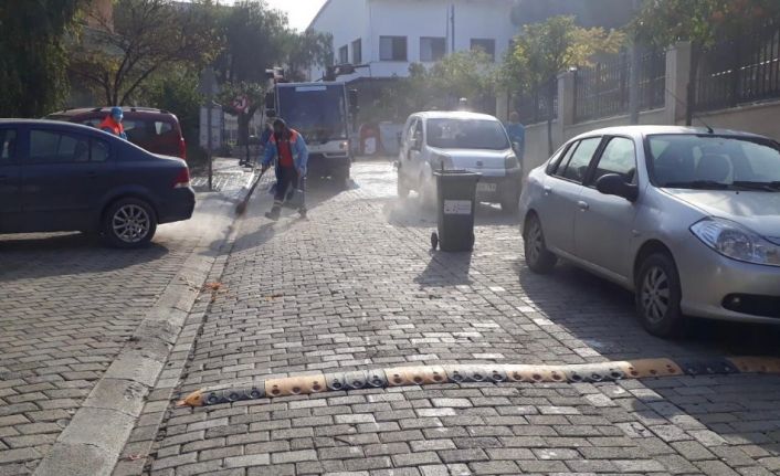 Kuşadası Belediyesi Temizlik İşleri Müdürlüğü (TİM) kent genelinde yürüttüğü detaylı temizlik çalışmalarına aralıksız devam ediyor. Ekipler bu kapsamda son olarak Davutlar Mahallesi’nde detaylı temizlik çalışması yaptı. Mahallede bulunan tüm cadde ve sokaklar detaylı bir şekilde temizlenerek korona virüs salgınına karşı dezenfekte edildi.