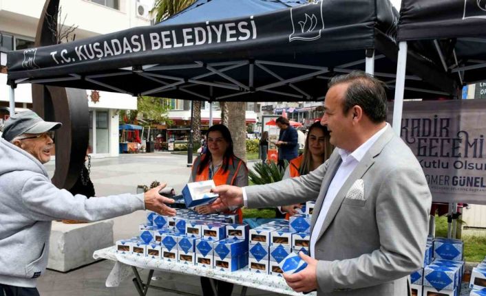Kuşadası Belediyesi, Kadir gecesi dolayısıyla Kaya Şavkay Meydanı’nda vatandaşlara kandil simidi ikramında bulundu.