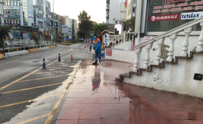 Türkiye’de korona virüs vakasının ilk kez görüldüğü 11 Mart tarihinden itibaren halk sağlığını korumak için bütün tedbirleri alan Kuşadası Belediyesi, ilçe genelindeki dezenfekte çalışmalarını aralıksız sürdürüyor. Temizlik İşleri Müdürlüğü’ne bağlı 30 kişilik özel ekip son olarak İnönü Caddesi ile İkiçeşmelik ve Camikebir Mahallelerinde detaylı temizlik faaliyeti yürüttü. Yol ve kaldırımlar, 80 derecelik köpüklü su ile yıkanıp, fırçalandı. Ayrıca vatandaşların temas etme ihtimali bulunan yüzeyler özel solüsyonlarla hijyenik hale getirildi. Program dahilinde diğer cadde ve sokakların düzenli olarak temizlenmeye devam edeceği belirtildi.