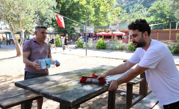 Bazı vatandaşlar kendi imkanları ile oturacakları masalarda temizlik yaparken imkanı olmayan ve bu konuda hazırlıksız gelenler çöplerin ve domuz pisliklerinin arasında günlük tatilini yapmak zorunda kalıyor.