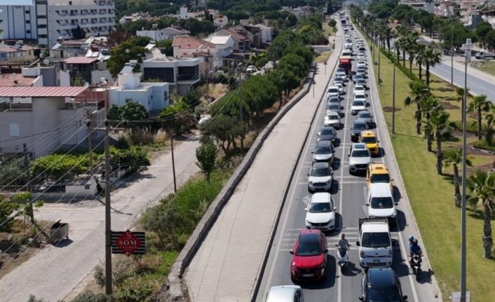Aydın’ın Kuşadası ilçesi, Kurban Bayramı nedeniyle tatilcilerin akınına uğradı. Kentin Selçuk yönündeki girişinde uzun araç kuyruğu oluştu.