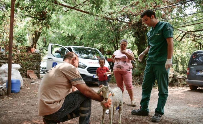 Kuşadası Belediyesi Sağlık İşleri Müdürlüğü’ne bağlı olarak hasta ve yaralı hayvanlara ilk müdahalede bulunmak amacıyla hizmet veren iki Haybulans aracından birisi, bir veteriner hekim ve bir veteriner teknisyeni ile birlikte Marmaris’e ulaştı. Orhaniye bölgesinde alevlerden ve dumandan zarar gören büyükbaş ve küçükbaş hayvanlar ile evcil ve yabani hayvanları tedavi etmeye başlayan Haybulans aracı, hayvanlar için yem ve mama desteğinde de bulundu.