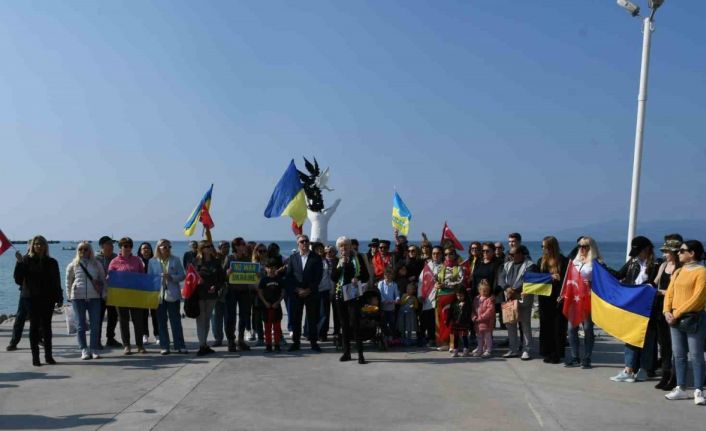 Öte yandan Kuşadası’nda yaşayan Ukraynalılar, savaşın birinci yılında İsmail Cem Dostluk ve Barış Meydanı’nda bir araya gelerek basın açıklaması yaptı. Ellerinde İngilizce, Rusça, Ukraynaca ve Türkçe dövizler taşıyan grup, önce ülkelerinde hayatını kaybeden asker ve siviller ile Kahramanmaraş merkezli meydana gelen depremlerde ölenler için saygı duruşunda bulundu. Daha sonra Ukrayna Ulusal Marşı ve İstiklal Marşı okundu. Basın açıklamasına Kuşadası Belediye Başkan Yardımcısı Oğuzhan Turan, sivil toplum kuruluşları ve Türk vatandaşları da katıldı.