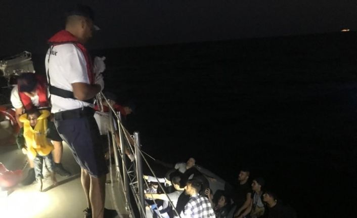 Kuşadası’nda sahil güvenlik ekiplerinin gerçekleştirdiği iki ayrı operasyonda yasa dışı yollardan yurt dışına kaçmaya çalışan 7’si çocuk, 21’i kadın toplam 56 düzensiz göçmen yakalandı.