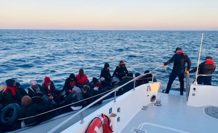 Aydın’ın Kuşadası ilçesi açıklarında Yunan unsurları tarafından geri itilen lastik bot içerisindeki 32 düzensiz göçmen kurtarıldı.