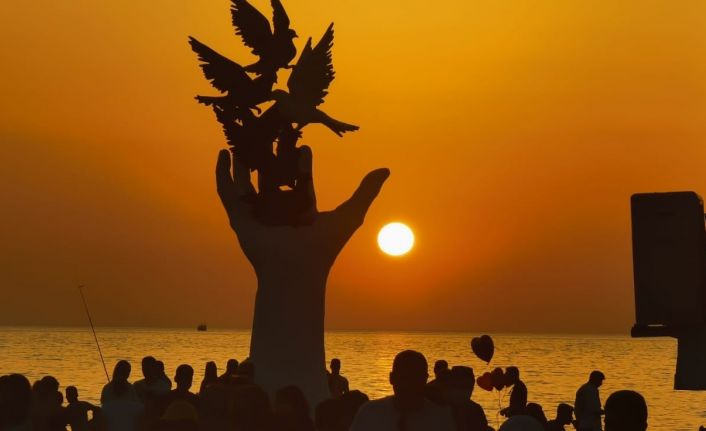 Kuşadası’nda gün batımında seyirlik görüntüler oluştu. İsmail Cem Barış ve dostluk meydanında bulunan el heykeli güneşin ufuk çizgisinde kayboluşu esnasında ortaya çıkan doğal kızıllık görenleri kendine hayran bıraktı. Güneşin Güvercinada Kalesi’nin arkasından batmasıyla birlikte gökyüzündeki bulutlar kırmızıya boyanırken, güneşten yansıyan ışıklar sahilde görsel bir şölen oluşturdu. İzmir’den Kuşadası’na ailesiyle birlikte tatile gelen evli ve 2 çocuk babası Can Eruzundal "Kuşadası çok güzel bir yer. Yoldan geçerken bu manzarayı gördük. Biz de merak edip bu harika doğa olayını izledik. Gerçekten görülmeye değer bir manzara var" diye konuştu.