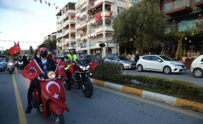 Kuşadası Belediyesi’nce düzenlenen Cumhuriyet konvoyuna yaklaşık 25 bin araç katıldı. Kısmet Otel Kavşağı’ndan saat 17:30’da hareket eden konvoydaki araçlar, Atatürk posterleri ve Türk bayrakları ile donatıldı. Kuşadası Belediye Başkanı Ömer Günel ile eşi Duygu Gül Günel de özel olarak hazırlanan üstü açık kamyona binip halkı selamlayarak vatandaşların 29 Ekim Cumhuriyet Bayramı sevincine ortak oldu. Renkli görüntülere sahne olan konvoyun en ön bölümünde yer alan Kuşadası Motosiklet Kulübü üyesi 500 motosikletli ise yol kenarına dizilen vatandaşlardan büyük ilgi gördü. 5 kilometrelik bir uzunluğa erişen araç konvoyunun şehir turunu tamamlaması yaklaşık 2 saat sürdü.