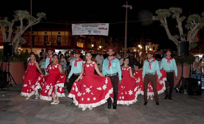 Türkiye’nin turizm başkenti Kuşadası, normalleşme adımlarının atılmasıyla birlikte kültür ve sanat etkinliklerinin yeniden gözde merkezi haline geldi. Bu kapsamda, dünya turnesine çıkan Meksikalı dans grubu Grupo Folklorico de Mexico’nun Çanakkale’den sonraki durağı Kuşadası oldu. 12 kişiden oluşan grup, Balıkçılar Meydanı’nda Meksika’nın folklorik danslarını hareketli müzikler eşliğinde Kuşadalılar için sergiledi. Birbirinden ilginç kostümleri ile de dikkat çeken dans grubu seyircilerden büyük beğeni ve alkış topladı. Gecenin sonunda Kuşadası Belediyesi Sosyal Yardım İşleri Müdürü Hüsnü Yalçın, Kuşadası Belediye Başkanı Ömer Günel adına Grupo Folklorico de Mexico’nun kurucusu Alejondro Coronado’ya teşekkür plaketi verdi.