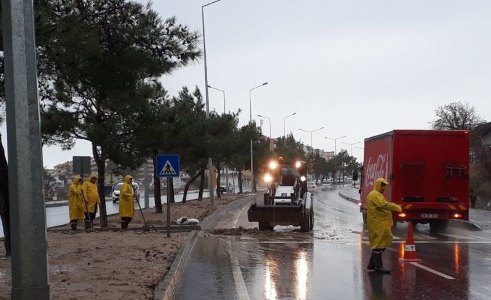 Kuşadası Belediye Başkan Yardımcıları Oğuzhan Turan ve Seyfi Seyhan Suvari, Belediye Başkanı Ömer Günel’in talimatıyla yoğun yağışlardan etkilenebilecek bölgeleri gece boyunca dolaştı. Başkan Yardımcıları, ekiplere yaşanabilecek her türlü olumsuzluğun önüne anında geçilmesi için talimat vererek sahada incelemelerde bulundu. Aydın Büyükşehir Belediyesi ile Kuşadası Belediyesi ekipleri, çalışmalarına sabah saatlerinde de devam etti. Sağanak nedeniyle kent genelindeki yollarda biriken taş parçaları ile çamur tabakası, Temizlik İşleri Müdürlüğü ekiplerince temizlendi.