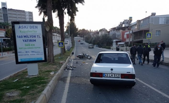 Kaza, Kadınlar Denizi Mahallesi Yüksel Yalova Caddesi üzerinde saat 17.00 sıralarında meydana geldi. Edinilen bilgiye göre, Mertcan D. kontrolündeki 43 LH 512 plakalı Tofaş otomobil ile Mert Y. kontrolündeki 09 BBL 48 plakalı motosiklet kavşakta çarpıştı. Kazada motosiklet sürücüsü metrelerce sürüklendi. Çevredeki vatandaşlar durumu 112 Acil Sağlık ekiplerine bildirdi. Yaralı ambulansla Kuşadası Devlet Hastanesi’ne kaldırılarak tedavi altına alındı. Motosiklet sürücüsünün hayati tehlikesinin bulunduğu öğrenildi.