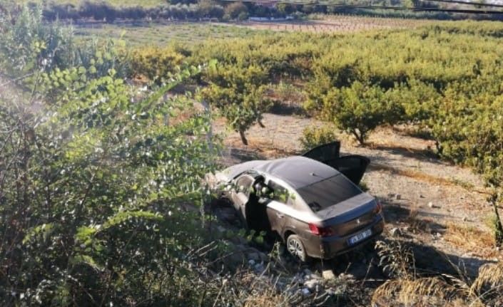 Aydın’ın Kuşadası ilçesinde kontrolden çıkan otomobil tarlaya uçarken, kazada 2 kişi yaralandı.