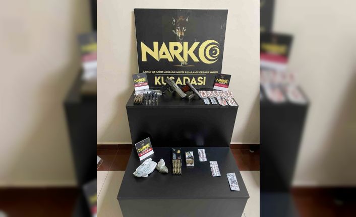 Kuşadası İlçe Emniyet Müdürlüğü Narkotik Suçlarla Mücadele Büro Amirliği ve Yunus Ekipleri, uyuşturucu ile mücadele kapsamında ortak bir operasyona imza attı. Operasyon sonucunda S.K. isimli şahıs gözaltına alındı. Şahsın aracında yapılan aramalarda suç unsurlarının tespit edilmesinin ardından, soruşturma derinleştirildi ve şahsın adreslerinde de aramalar gerçekleştirildi. Yapılan aramalarda 134 adet sentetik uyuşturucu hap, 38 gram esrar maddesi, 2.72 gram metamfetamin uyuşturucu madde, 1 adet 7.65 mm ruhsatsız tabanca, 1 adet şarjör, 1 adet kurusıkı tabanca, 115 adet farklı çaplarda dolu fişek, 15 adet kurusıkı fişek ele geçirildi. Söz konusu maddelere el konulurken, şahıs yasal işlemler için emniyete götürüldü. S.K., işlemlerinin ardından adli makamlara sevk edilmek üzere gözaltına alındı.