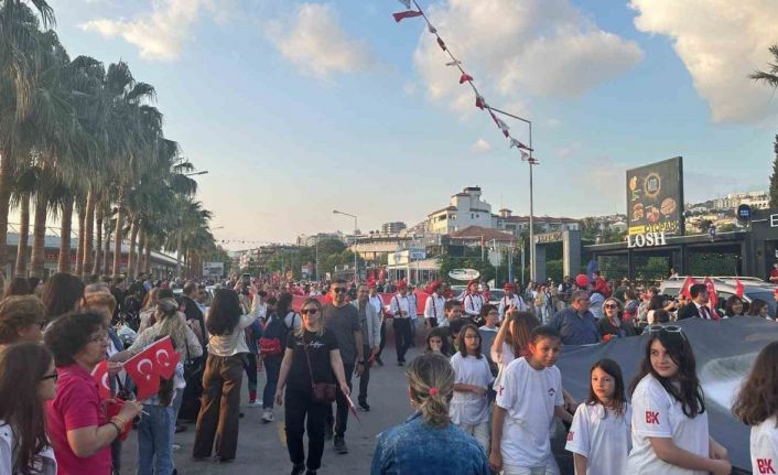 Aydın’ın Kuşadası ilçesi 19 Mayıs kutlamaları çerçevesinde renkli bir korteje ev sahipliği yaparken, binlerce vatandaş ellerine aldıkları Türk bayrağı ile coşkulu bir yürüyüş gerçekleştirdi.