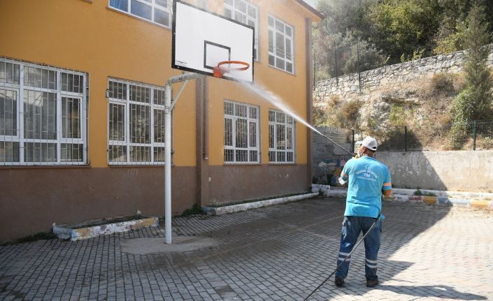 Kuşadası Belediyesi uzun bir aranın ardından yüz yüze eğitimin başladığı okullarda her hafta sonu dezenfekte çalışması yürütmeye başladı. Bu kapsamda Temizlik İşleri Müdürlüğü’ne bağlı İlaçlama Birimi bünyesinde çalışan iki ekip, Cumartesi günleri kent genelindeki 24 okulu korona virüs salgınına karşı dezenfekte ediyor.